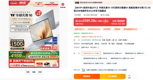 华硕无畏16,88VIP国补消费券后到手仅4159.2元