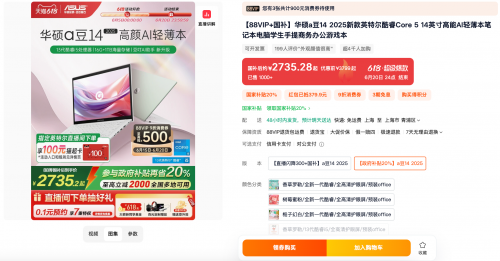 华硕a豆14 2025,88券国补后到手仅2735.2元