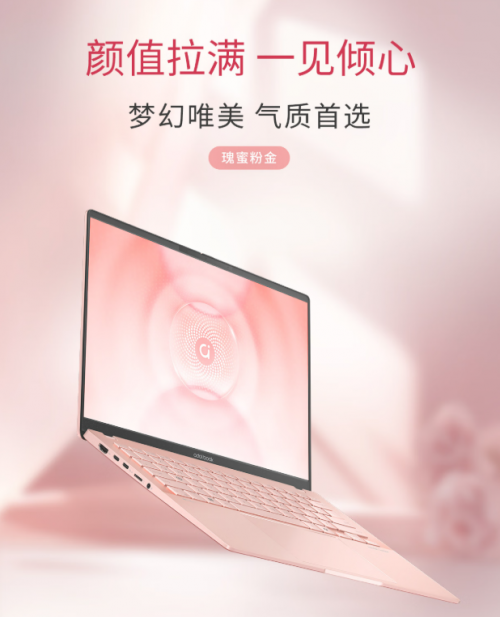 华硕a豆14 Air 香氛版,以瑰蜜粉金的配色,展现出时尚与优雅的气质。当目光落于其上,仿佛邂逅一场梦幻的粉色绮梦。柔和而不失高级感的色泽,在光线的轻抚下流转着迷人的光泽,将浪漫与精致融于一体,悄然诉说着使用者的个性与格调。