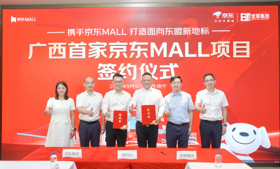 9月9日,京东集团与广西宝塔商业管理有限公司举行京东MALL签约仪式,广西首家京东MALL正式落子南宁市青秀区埌东商圈。京东MALL项目规划面积约3万平方米,将引入全球200个一线品牌,打造面向南宁及整个东盟地区的高标准数智化商业新地标。