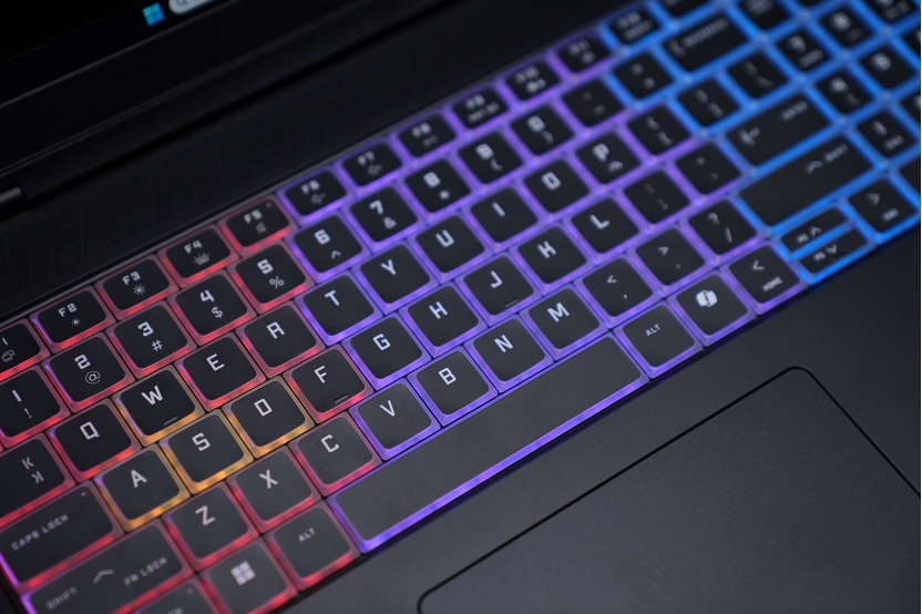键盘区域同样是暗影精灵 MAX的一大亮点。它采用了全新旗舰模具设计搭配无边框高透RGB键帽,四分区RGB背光绚丽夺目,全键无冲,而且键盘的键程适中,手感舒适,回弹迅速,无论是激烈的游戏操作还是日常的文字输入,都能让玩家得心应手。