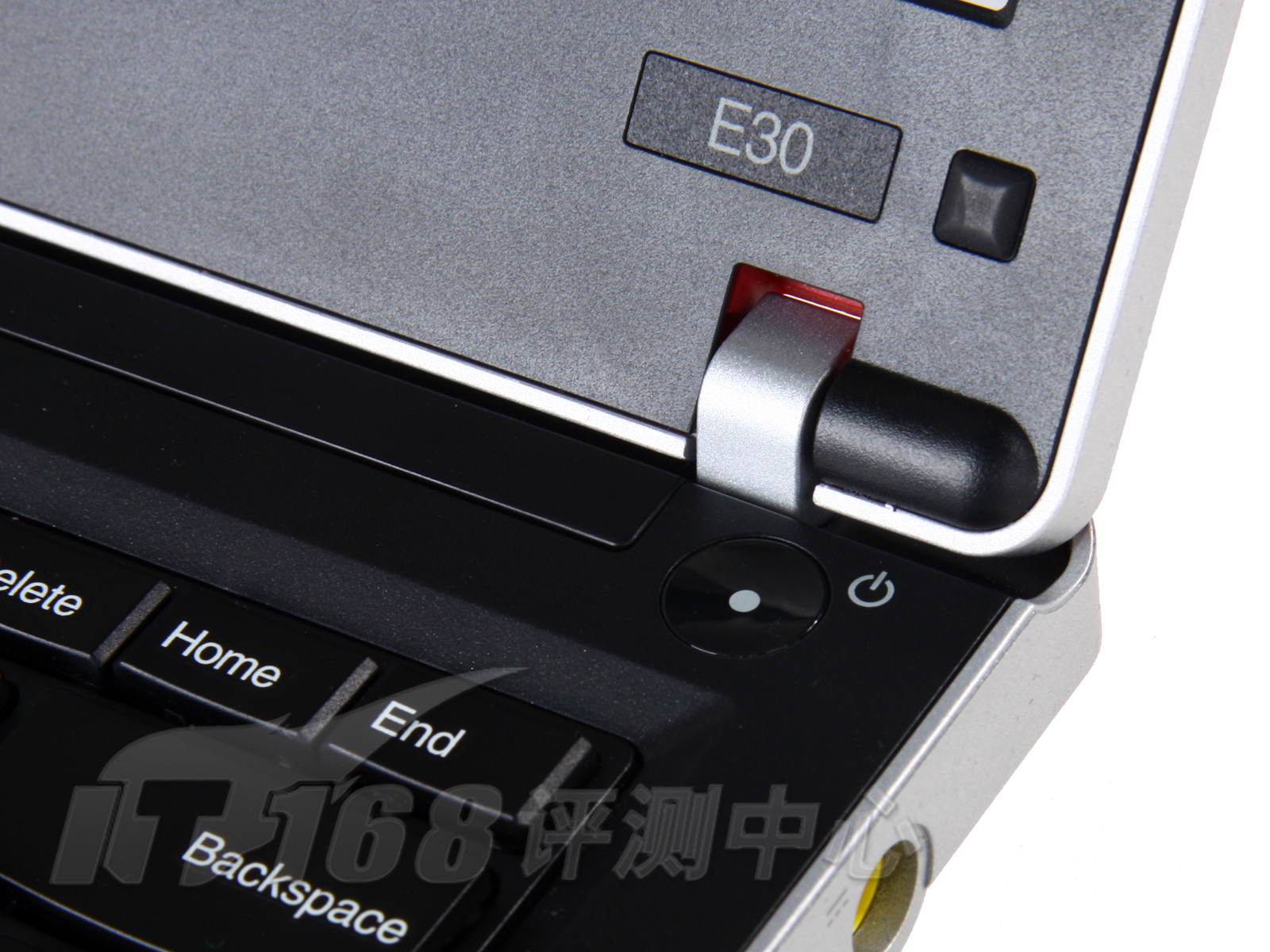 由于产品定位轻巧便携, 因此,Edge E30在屏幕的衔接处选择了类似早期X200的高强度不锈钢铰链。如此设计的好处在于,屏幕可开阖角度十分大,甚至超过了180度界限,方便用户在各种姿势下使用。而键盘右上方的电源开关键也让我们依稀看到了ThinkPad的设计风格。