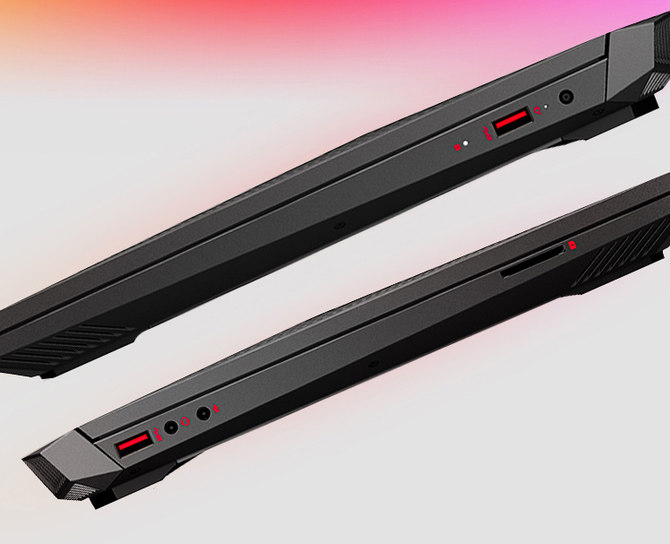 在接口方面,我们常见的游戏本大多把接口设计在机身两侧,尤其是在机身的右侧,如果同时外接很多设备,就会影响右手的操作,桎梏不流畅。惠普暗影精灵5在机身的左右侧提供了较为常用的USB 3.1 Gen1,耳麦/麦克风双接口,SD读卡器,而主要的接口都集中在机身后部,包括RJ45有线网络、HDMI、mini DP接口、雷电3接口和1个USB 3.1 Gen1接口,这些接口也都是用于连接常用的设备,所以由此可见惠普暗影精灵5在接口的设计上是非常用心贴近消费者需求的。