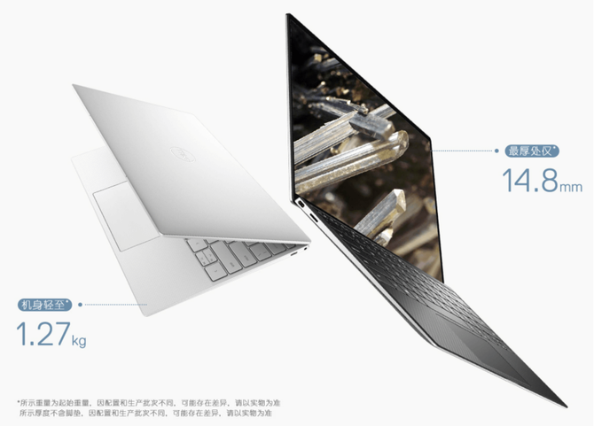 戴尔的XPS系列一直是轻薄笔记本中的尖端产品,此次新款XPS 13在原有的基础上再次升级,升级了性能并改观了外观设计。此次2020款XPS 13的屏幕比例由原先的16:9变成了16:10,屏幕尺寸变成了13.4英寸,采用了全新的“InfinityEdge”窄边框设计,屏占比达到了91.5%。1.27kg的机身重量+机身最厚处14.8mm的厚度,基本做到了极致的轻薄。
