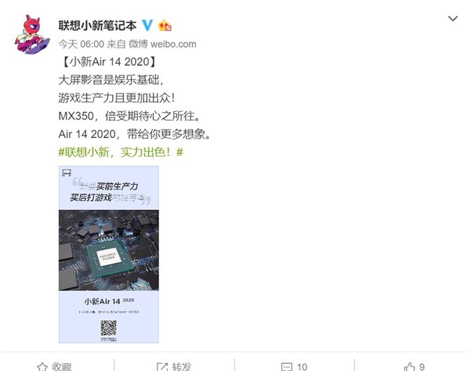 近日,联想小新笔记本官方微博宣布小新Air 14 2020,官方号称这是一款“买前生产力,买后打游戏”的轻薄本,其中提到将首发搭载MX 350独显。