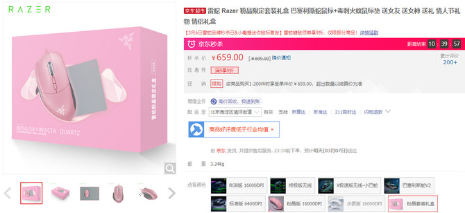 这款雷蛇粉晶限定套装定价699元,目前在京东上的秒杀价为659元。如果你正在发愁不知道送什么礼物给Ta,不妨考虑这款这款套装,可不仅仅是女生最爱,有些男生玩家也很钟爱哦。【点击前往京东购买】