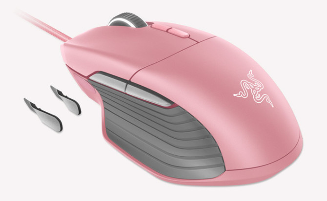 巴塞利斯蛇鼠标采用右手人体工学设计,外壳粉色,两侧侧裙为灰色,尾部是雷蛇LOGO,带有灯效,跟滚轮一起,可以通过雷云3配置软件进行设定效果,以及分配按键功能。作为一款电竞鼠标,右手大拇指处还配备了两个可拆卸FPS狙击侧键,随时切换预设的DPI值,实现大幅转向或微调准星,迅速锁定敌人并实施致命打击。