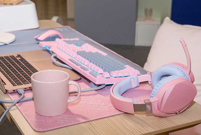 对于粉色控玩家来说,当然是希望所有的电竞用品都是粉色,那样才能更加酷炫和彰显个性。只是完全粉色的电竞主机还不多,但是周边装备却完全可以武装起来。如果你资金充裕,那么这款ROG机械键鼠+耳机的4件套一定不能错过。