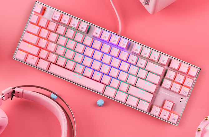 最后再给大家推荐一款性价比很高的雷神K750机械键盘,粉硬糖色,色调和质感都相当不错,也是笔者一直在用的一款,87键RGB背光,同样有多款配色、多种轴可选,不仅适合女生,也有适合男生的红蓝系列。