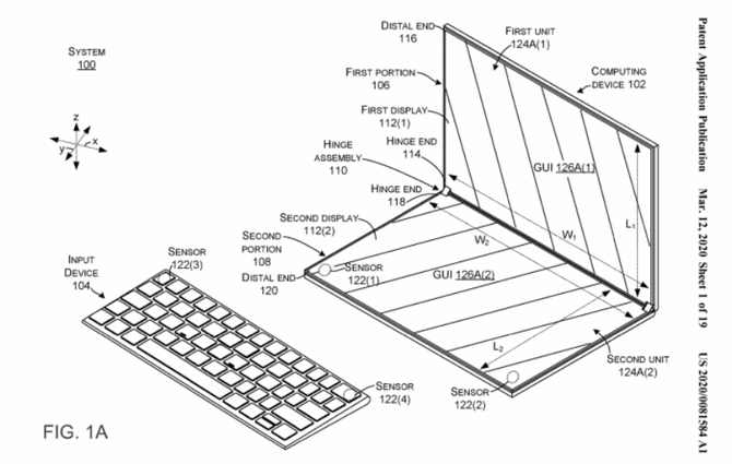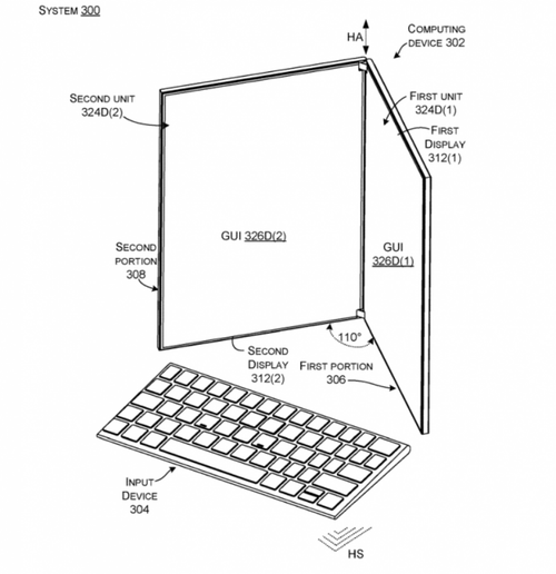 近日,有外媒发现了一项微软关于Surface Neo的新专利,专利中,微软着重体现了Surface Neo双屏所能够提供的不同功能,同时在设备的角落配置了传感器,当设备的屏幕被遮挡时,Surface Neo将能够根据遮挡物来重新计算显示画面的区域。