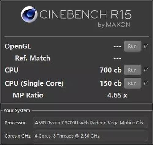 4核心8线程的锐龙7 3700U实测性能甚至超越了部分同核心数的台式机处理器