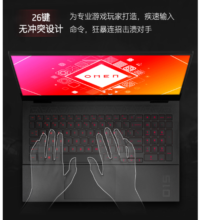 暗影精灵6的键盘可选2区和4区背光,具有很高的辨识度,同时也让机身变的更加炫酷。26键无冲与WASD高亮设计,则满足了专业游戏玩家们的高强度竞技需求。值得一提的是,此次暗影精灵6还采用了“超级键盘”的设计,将电源键、惠普游戏控制中心呼出键融入整个键盘,看起来一体性更强,更加工整美观。细节之处尽显巧思。