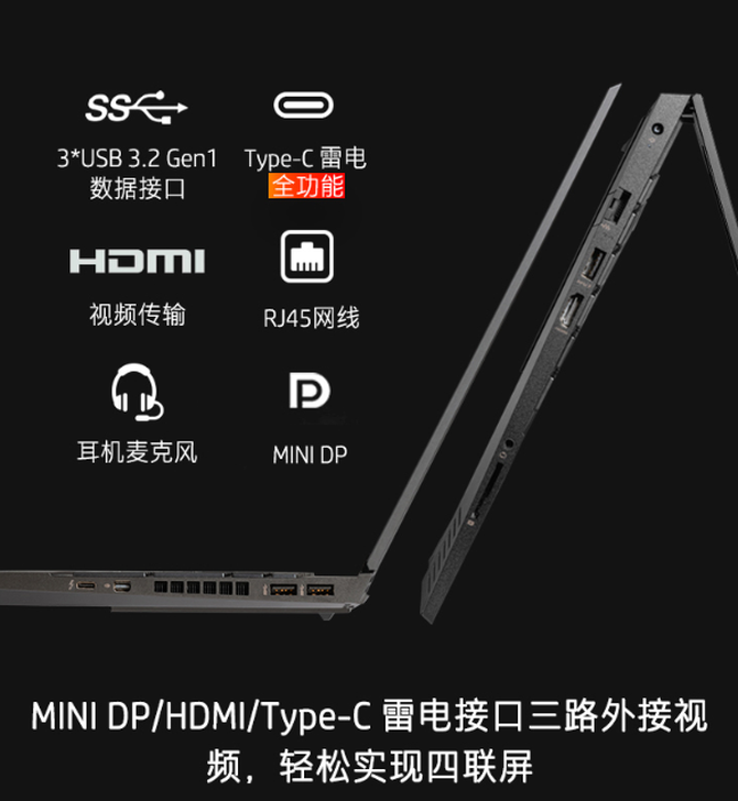 即使机身变得更薄,暗影精灵6依旧提供了丰富的接口,包括3个USB 3.2 Gen1、1个全功能Type-C/雷电3、1个HDMI、1个MINI DP、1个RJ45网口、1个3.5mm耳机麦克风接口等。此外暗影精灵6也支持较新的WiFi6技术,能够提供高速率低延迟的网络体验,进一步提高了整机的连接性与拓展性。