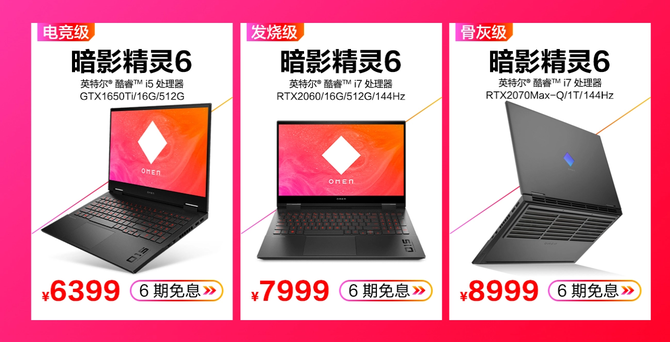 目前暗影精灵6已在京东小魔方开启预约通道,现在预约就可以享受到最超值的先发预约冰点价,电竞级配置(酷睿i5-10300H+GTX 1650 Ti+512GB SSD+16GB内存)售价6399元、发烧级配置(酷睿i7-10750H+RTX 2060+512GB SSD+16GB内存+144Hz)售价7999元、骨灰级配置(酷睿i7-10750H+RTX 2070Max-Q+1TB SSD+16GB内存+144Hz)售价8999元,均可享受6期免息。