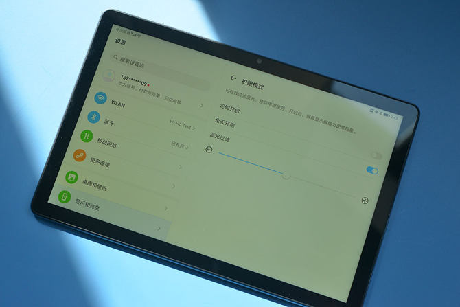 荣耀平板6提供芯片级多重智能护眼,海思芯片内置颜色调节模块,实现了专门的接口专用于护眼模式,在护眼模式开启状态下对显示的内容进行智能调整,即在硬件层面拥有独立的护眼模式。软件方面,配合芯片内置的颜色调节模块以及环境光传感器,独立研发三种不同的算法,根据环境光给颜色调节模块进行调解,从而达到更好的护眼效果。并且,荣耀平板6专业护眼模式,通过国家眼科工程中心护眼认证及德国莱茵TÜV低蓝光认证。
