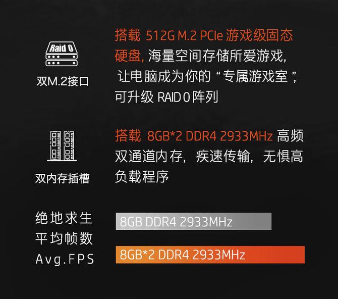 除此之外,暗影精灵6采用了高性能存储设备,由于酷睿十代处理器原生支持2933内存,所以惠普几乎全系标配了8g*2或者16G*2的双通道内存,在游戏表现方面,双通道内存带来双倍的性能提升,能够有效提升游戏帧数,同时高频率的内存在一些应用表现上更加出色,而PCIe高性能硬盘,可以实现游戏的秒载入,让用户在游戏的时候无需等待。