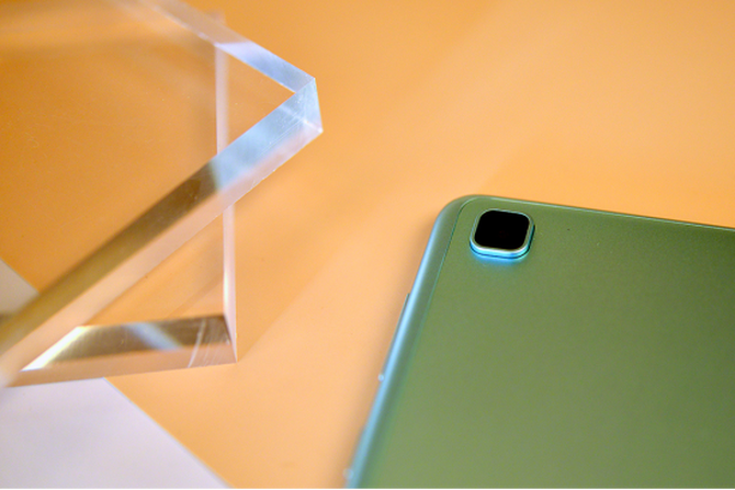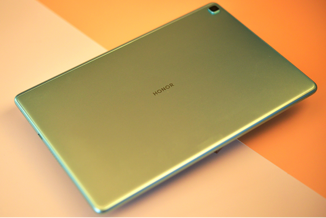荣耀平板X6的背面采用了非常有质感的喷砂阳极工艺,从而打造了微磨砂的质感,摸起来非常舒服。我们拿到的这一款是薄荷绿配色,这种绿色透着淡淡蓝色的感觉非常清新,也非常适合年轻人群的审美。
