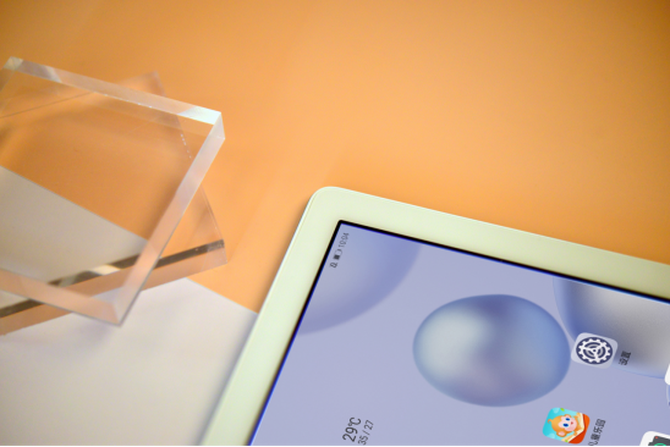 荣耀这个品牌本身就是年轻时尚的代名词,旗下的产品也是为年轻用户打造的潮美设计,这次在荣耀平板X6上依旧延续了荣耀的潮美设计。正面是一块9.7英寸的大屏,分辨率达到了1280×800,720P的分辨率显示还是比较清晰的,同时这块屏幕还支持了低蓝光护眼认证,长时间使用也能避免眼睛疲劳。