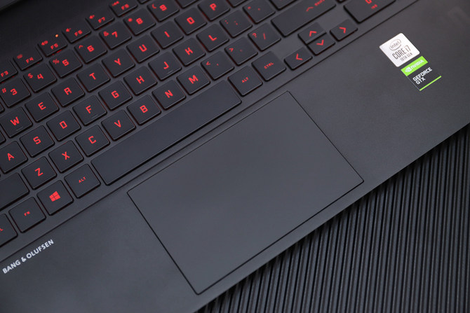 掌托的右下角是Intel十代酷睿处理器的标贴和NVIDIA GeForce显卡的绿标,十代酷睿+NVIDIA显卡的配置能够为整机提供强悍的性能,此外还有O15的设计字样。