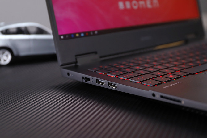 尽管暗影精灵6的机身已经足够轻薄,但是依然提供了丰富而主流的接口。机身左侧除了圆形的电源接口,还配备了RJ45网络接口,一个USB3.1 Type-A接口,一个HDMI 2.0接口,一个3.5mm耳麦接口和一个SD卡槽。