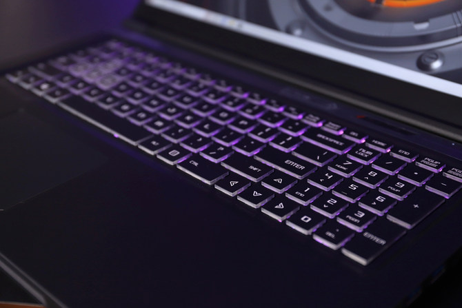 深海泰坦X3-S的C面有一个全尺寸的RGB键盘,没有使用机械键盘虽说是个遗憾,但是这块键盘的键程较长,手感和反馈都很不错,更何况通过内置的软件还能调节多种背光颜色。触控板并不是那种大尺寸的触控板,毕竟对于游戏本来说,触控板的作用几乎可以忽略。