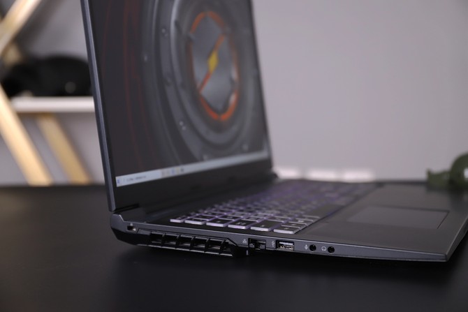 接口方面,机械革命深海泰坦X3-S的左侧有一个RJ45网线接口、一个USB接口,一个音频接口、一个麦克风接口。