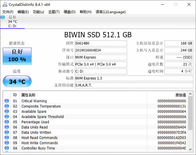硬盘方面,BIWIN佰维存储,512GB PCIe NVMe模式,能够确保系统和程序的快速启动,以及大文件数据的高速传输。