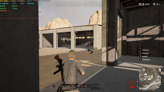 在绝地求生这款游戏中,画面设置大体为中等画质,在游戏中大体能够得到116FPS及以上的帧率,显卡温度为69℃,CPU温度在73℃。整个游戏过程也相当流畅,在相对复杂的环境中,强大的硬件性能因为散热系统的给力也没有掉链子的情况。对于游戏主播玩家来说即使后台多一个录屏软件也不会有很大的影响。