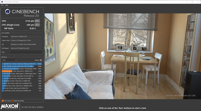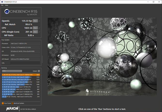 在Cinebench R15的基准测试中,这颗酷睿i7-10875H处理器单核得分201cb,多核得分1823cb,在多核性能上甚至超出了桌面级十代酷睿i5-10400,可见此次多加的两个核心对于多核性能的提升有多么重要。