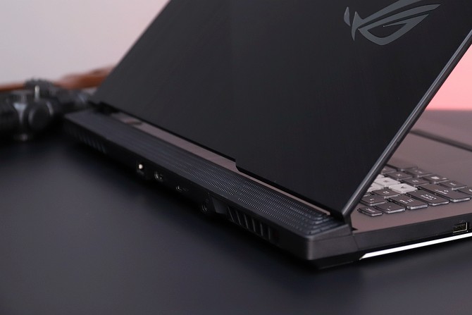 这款游戏本采用鸥翼转轴前置设计,转轴后部为流动式3D散热脊进风口,极大增加了进风口面积,内置5热管3出风口设计,拥有双12V绝尘风扇,确保内部热量快速带出。从上文中的CPU性能测试也可知,此次ROG魔霸4在散热设计上做得非常出色,面对8核心16线程的优异酷睿i7处理器和RTX 2060独显也能够应付自如。