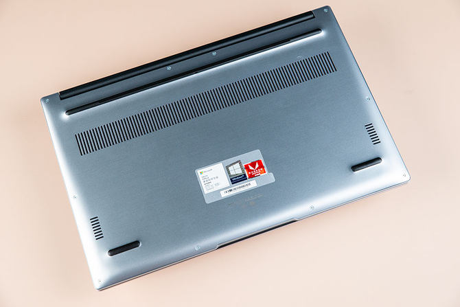 荣耀MagicBook 14 SE背面预留了大量的散热孔,加上更高密度的鲨鱼鳍2.0 S型扇叶设计的散热器能带来更好的散热效果,同也降低了风扇噪音。