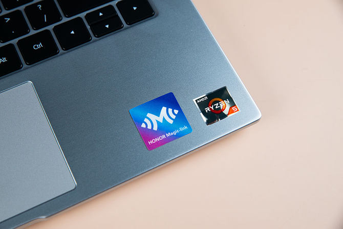 荣耀MagicBook 14 SE上有一个Magic-Link的NFC标签,支持NFC的荣耀手机轻轻一碰就可以启动多屏协同功能,实现图片、视频、微软office文档等在笔记本和手机之间一键拖拽。