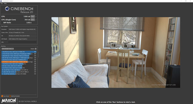 CPU性能方面,我们使用CINEBENCH R20进行测试,荣耀MagicBook 14 SE多核心成绩为1395cb,单核心成绩为355cb,CPU的性能输入中上游水平。