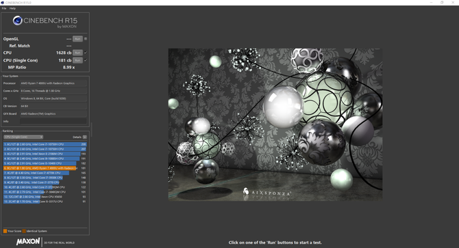 经过实际的测试,在CINEBENCH R15中,AMD 锐龙7 4800U的多核心成绩为1628cb,单核心成绩为181cb,性能表现优秀。