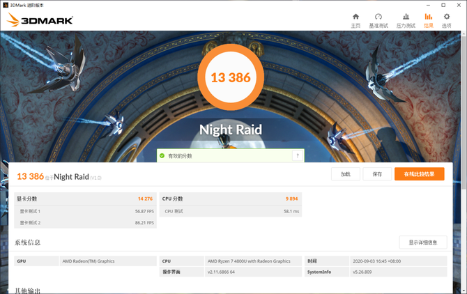 3DMARK是我们平时较为常用一款测试整机性能表现的基准测试软件,在这个项目中我们可以看到,搭载了Radeon核显的AMD 锐龙7 4800U处理器跑分优秀,性能足够畅玩LOL这类的网络游戏,同时对于一般的P图和视频后期,R7 4800U也完全能够轻松胜任。