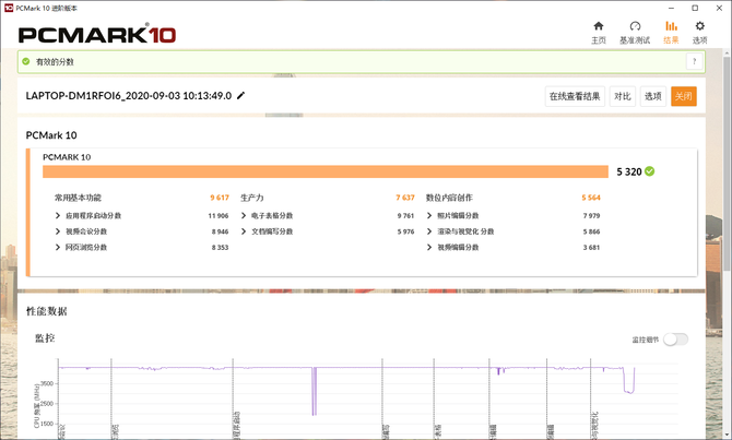 PCMARK10是一款针对现代办公电脑的基准性能测试软件,通过模拟用户日常使用的情况来全面评估电脑的性能,并且最终给出一个参考分数,分数越高则代表整机的性能也就越强,在这项测试中,搭载了AMD 锐龙7 4800U处理器的联想YOGA Slim 7的最终得分为5320,性能表现强劲。