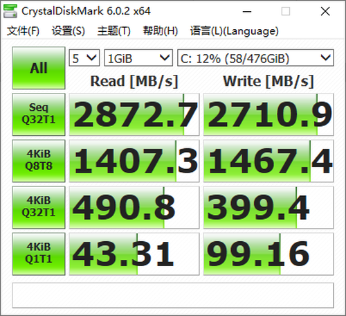 存储性能方面,联想YOGA Slim 7锐龙版轻薄本的硬盘随机读写性能分别为2872.7/2710.9MB/S,性能表现优秀,同时16G双通道内存的读取性能为46388MB/S,性能表现非常优秀。
