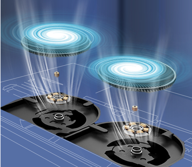想要将性能发挥到优异,那么散热设计应当有更高的标准。星14全能轻薄本采用双风扇设计,风扇采用三相马达,拥有更薄的扇叶,风速提升27%,同时带来16%的降噪音效,有效提升风速的同时还能降低噪音。凉爽的机身表面温度,让用户在使用键盘输入时倍感舒适。在宿舍与同学开黑时也能保持电脑与桌面清爽,游戏不卡顿,畅快五连杀!