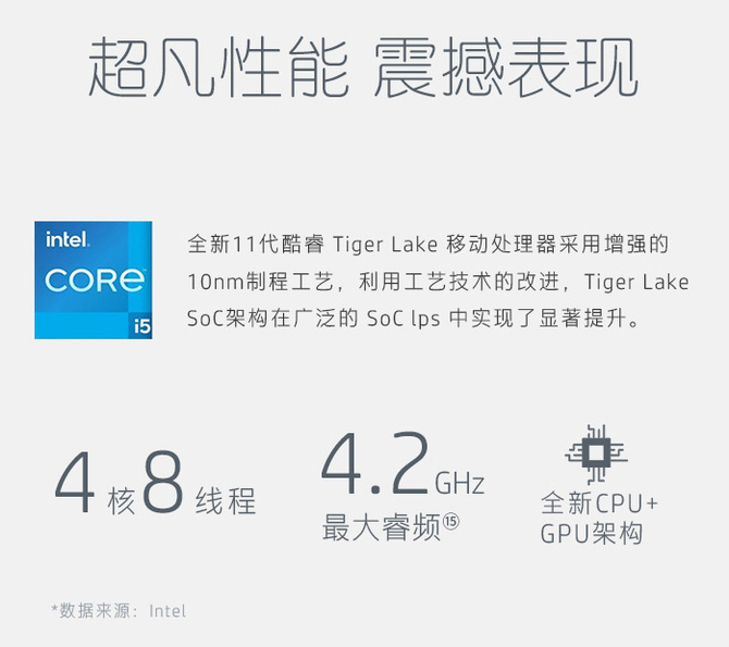 处理器高搭载英特尔第十一代酷睿i7-1165G7处理器,拥有4核8线程,主频提升到了2.8GHz,睿频提升到了4.7GHz,已经可以媲美桌面级处理器性能。