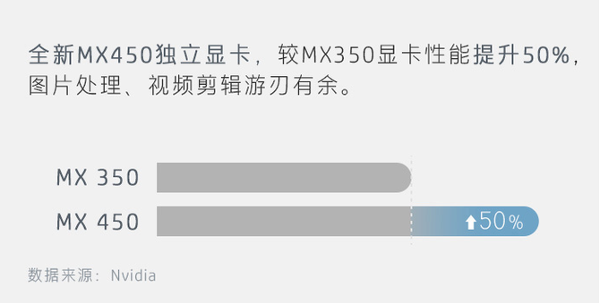 显卡高可选的MX450,独显综合性能比前代MX350提升50%以上,有这样的核心配置加持,战66四代可大幅提升整体运行速度和多任务处理能力,满足视频剪辑、图片渲染等专业商务需求。另外,显卡性能的提升也增强了战66四代的游戏性能,一些主流游戏比如LOL在高画质前提下也能流畅运行,对于想放松一下的小伙伴来讲非常友好。