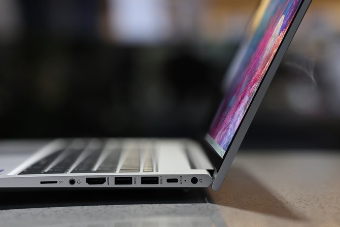 战66四代拥有一个安全锁孔,一个标准的网线接口,三个USB 3.1 Gen1接口(支持关机充电),一个USB-C 3.1 Gen2接口(全功能支持视频输出),一个HDMI接口,一个耳麦接口和一个Micro SD读卡器,接口非常的丰富,完全满足日常办公和拓展外设的使用需求。