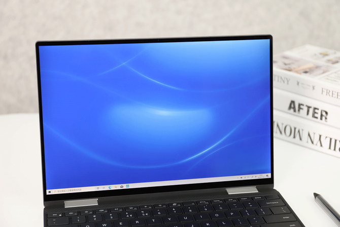 XPS13 9310 2in1笔记本选用了一块13.4英寸4K UHD+(3840×2400)分辨率的触控全面屏,屏幕两侧的边框仅4.18mm,同时还在屏幕顶部嵌入了一颗2.25mm的四元透镜式摄像头。