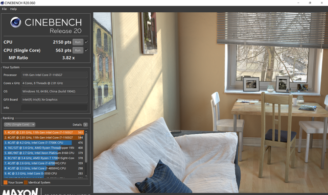 在CineBench R20的测试当中,这颗处理器的单核得分为563pts,多核得分达到了2150pts,在单核性能上甚至已经远超同样四核心八线程的英特尔第七代桌面级旗舰处理器i7-7700K。