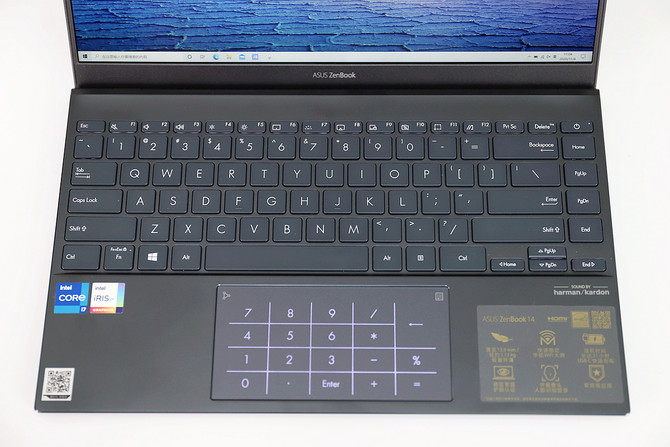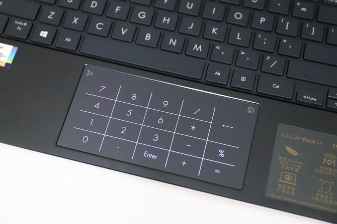 灵耀14s还采用了升级的NumberPad2.0触控板,磨砂玻璃材质,大尺寸,触控顺滑、空间自由,此外,当需要使用数字键盘时,只需要触摸一下右上角的图标,就会点亮/关闭数字键盘,数据输入效率瞬间提升。值得一提的是,即便是在数字输入状态,触控板功能依然有效,真的非常方便,使用了就爱不释手。