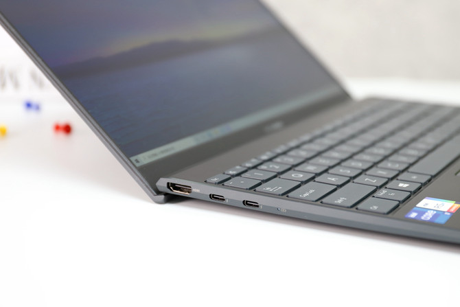 尽管灵耀14s的机身已经足够轻薄,但是在接口方面却依然很齐全,而且得益于CPU核心的升级,包括雷电4接口、WiFi 6无线连接等都悉数搭载。机身左侧包括1个HDMI 2.0,2个全功能雷电4接口,右侧配备了MicroSD接口和1个USB 3.2 Gen1接口,完备的连接和扩展能力,可以轻松连接8K或两个4K外接显示器,尤其是商务出差,再也不需要单独携带一个小尾巴用于转接了。