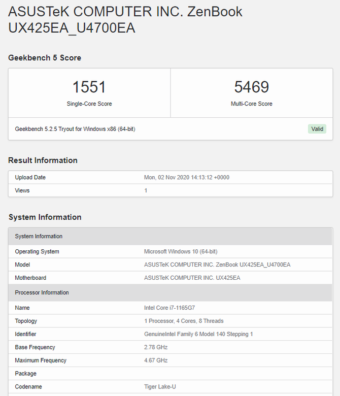 在CPU-Z基准测试中,这款笔记本搭载的酷睿i7-1165G7处理器单核得分为583.4分,多核得分2718.5分。