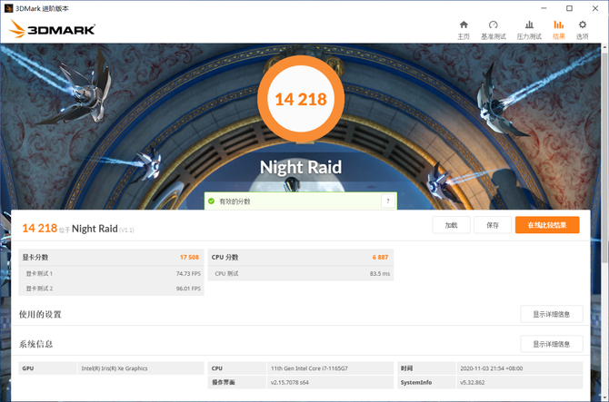 在3DMark 11中专业项目测试中,最终的得分为P6758,图形分数6596,意味着在游戏、图像渲染等方面的优秀表现。