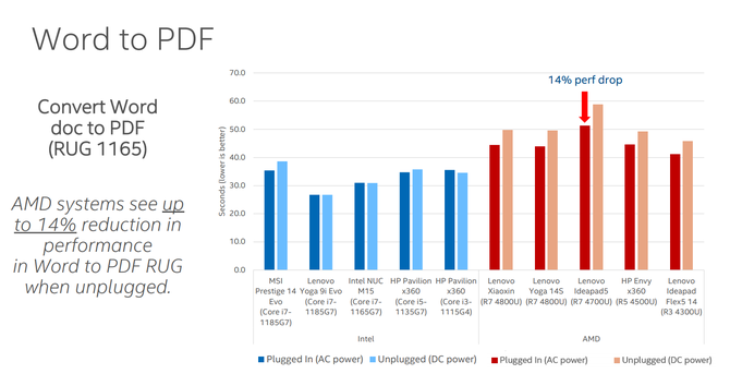 从Word文档转为PDF,AMD有14%的性能差别。