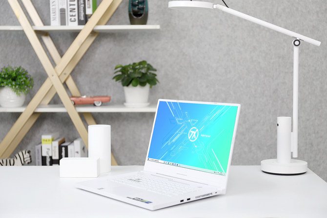 关于天选Air笔记本的外观设计我们就介绍到这里,可以看到,天选Air在外观上的设计很有想象力,这种奶白奶白的设计贯穿全身,初看还有些不适应,但是触摸之后你会感觉到细腻的手感,以及无论是高色域屏幕,还是舒适的键盘,丰富的接口等,逐渐你就会深爱上这个有点儿“另类”的笔记本,伴随着更长时间的体验,一种轻奢之感油然而生。