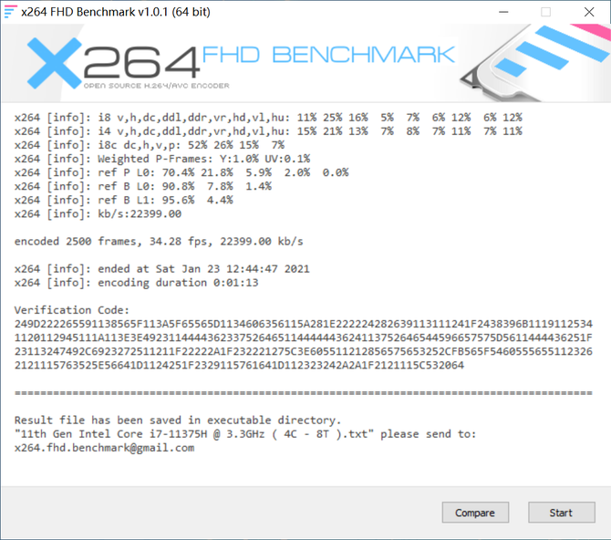 X264 FHD Benchmark测试是通过转换自带的一部影视作品来测试CPU的编解码能力并得出相应的分数。结果为34.28fps,每秒可处理22399kb数据。
